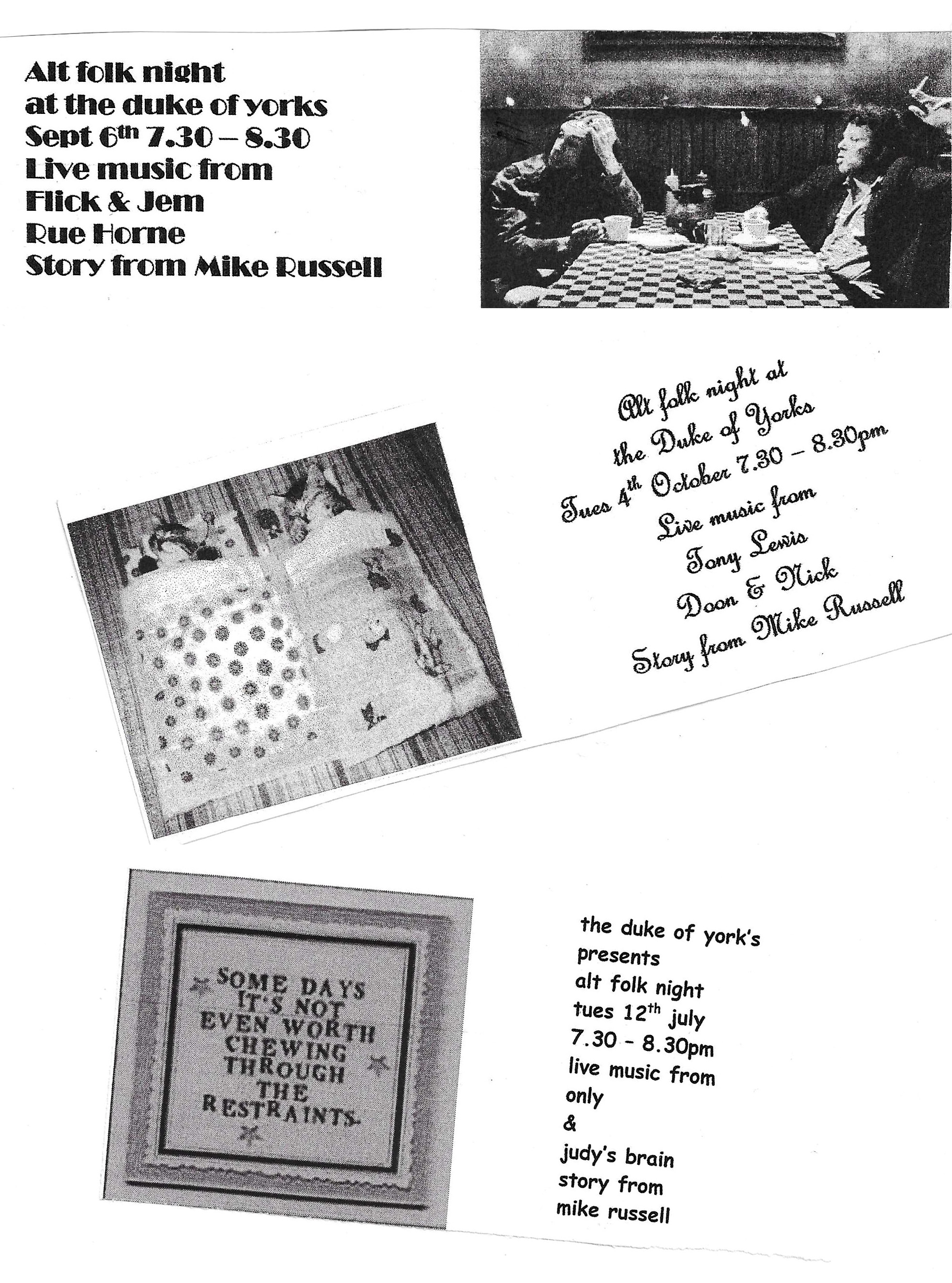 In 2005 I became resident storyteller at the Alternative Folk Nights in Brighton’s Duke of York Picturehouse cinema, where unsuspecting cinema goers were treated to my surreal monologues and stories. These evenings took place in the bar and were organised by Felicity Beckett who often provided music. Here she is…