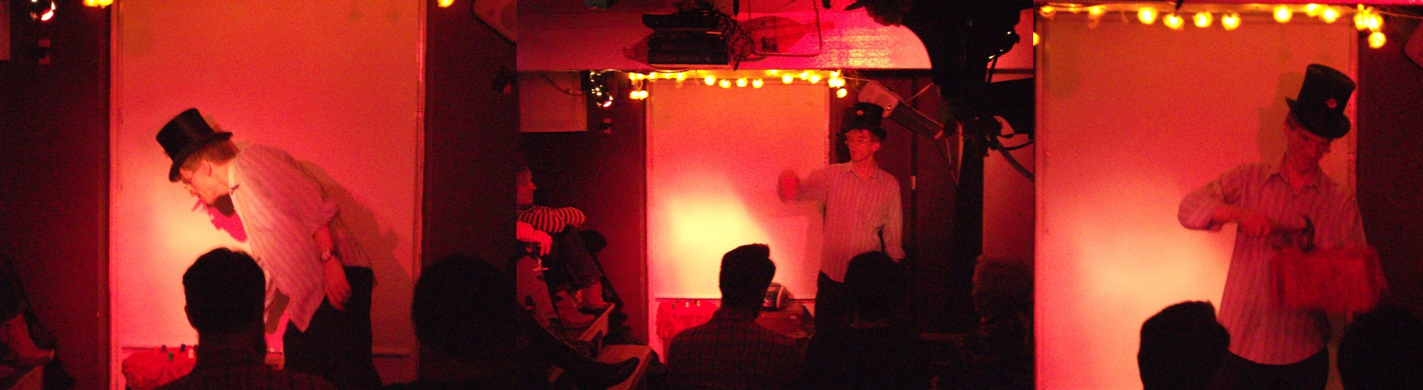 In 2008 I was asked to perform in Brighton’ s Bom-Banes Cafe. From 2008-2017 I performed many shows at Bom-Banes, incorporating my stories, artwork and sounds.