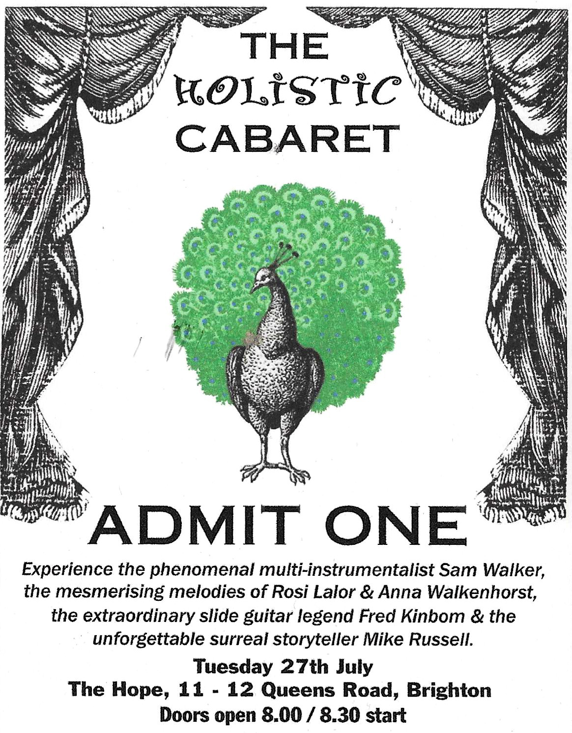 In the same year, I organised and compered The Holistic Cabaret at Brighton’s The Hope, during which I performed with Anna Walkenhorst on trumpet and Rosi Lalor on guitar.
